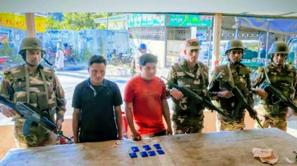 আলীকদম উপজেলায় সেনাবাহিনী ও থানা পুলিশের যৌথ অভিযানে ১ হাজার ৩৫০ পিস ইয়াবাসহ দুই মাদক কারবারিকে আটক করা হয়েছে। ১৯ ফেব্রুয়ারি ২০২৬ বিকাল সাড়ে ৩টার দিকে গোপন গোয়েন্দা তথ্যের ভিত্তিতে এ অভিযান পরিচালিত হয়। অভিযানে নেতৃত্ব দেন ক্যাপ্টেন মোহাম্মদ আলী তাওহীদ (৩১ বীর)। সেনাবাহিনীর একটি সি-টাইপ টহল দল এবং আলীকদম থানা পুলিশের এসআই নিশাত বড়ুয়া এতে অংশ নেন। অভিযান চলাকালে উপজেলার ৯৭ ব্রিগেড ক্যান্টিন মোড় এলাকা থেকে ১ হাজার ৩৫০ পিস ইয়াবাসহ দুইজনকে হাতেনাতে আটক করা হয়। আটকরা হলেন— মেনরাউ মুরং (৩৬), পিতা পারাউ মুরং, সুনোং পাড়া, ৭নং ওয়ার্ড, আলীকদম এবং উম ইয়ং ম্রো (৩৩), পিতা লাইরু ম্রো, হেডম্যান পাড়া, ৩নং ওয়ার্ড, গর্জনিয়া ইউনিয়ন, নাইক্ষ্যংছড়ি, বান্দরবান।