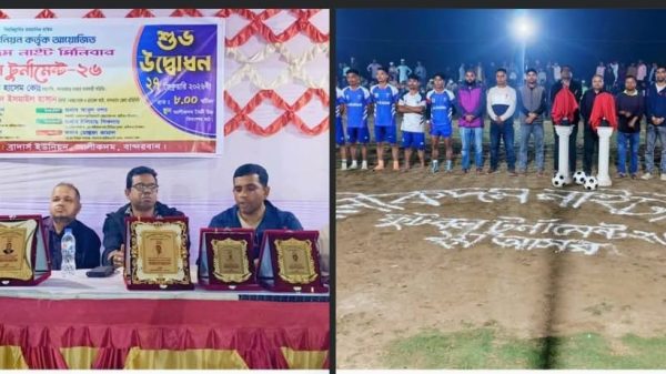 বান্দরবানের আলীকদম উপজেলাতে আলীকদম ব্রাদার্স ইউনিয়নের আয়োজনে জাঁকজমকপূর্ণ পরিবেশে “আলীকদম নাইট মিনিবার ফুটবল টুর্নামেন্ট ২০২৬” এর শুভ উদ্বোধন অনুষ্ঠিত হয়েছে। শুক্রবার (২৭ ফেব্রুয়ারি ২০২৬) রাত আনুমানিক ৯টায় আলীকদম মৈত্রী উচ্চ বিদ্যালয় মাঠে আয়োজিত অনুষ্ঠানে সভাপতিত্ব করেন বান্দরবান জেলা যুবদলের সহ-ত্রাণ ও পুনর্বাসন বিষয়ক সম্পাদক মোস্তফা কামাল। উদ্বোধক হিসেবে উপস্থিত ছিলেন আলীকদম পানবাজার ব্যবসায়ী সমিতির সভাপতি ও বিএনপি নেতা মোঃ আবুল হাশেম কোম্পানি। প্রধান অতিথি হিসেবে উপস্থিত ছিলেন চ্যানেল আই-এর বান্দরবান জেলা প্রতিনিধি সাংবাদিক মোহাম্মদ ইসমাইল হাসান।