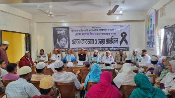 মিলাদ মাহফিলে পবিত্র কোরআন খতম শেষে বিশেষ মোনাজাতে দেশনেত্রী বেগম খালেদা জিয়ার রূহের মাগফিরাত কামনা করা হয়। একই সঙ্গে তাঁর রাজনৈতিক জীবনের ত্যাগ, সংগ্রাম ও দেশের প্রতি অবদানের কথা গভীর শ্রদ্ধার সঙ্গে স্মরণ করা হয়।