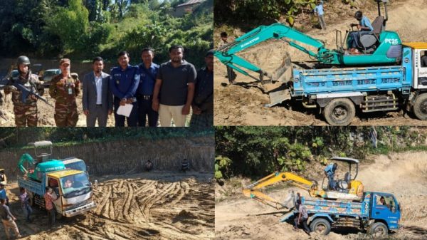 বেআইনি মাটি কাটায় স্ক্যাভেটর ও ডাম্পার জব্দ, ৭ লাখ ৫০ হাজার টাকা জরিমানা