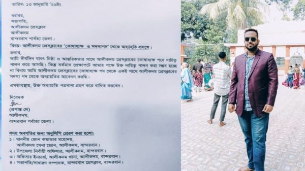 ব্যক্তিগত ও বর্তমান বাস্তবতায় দায়িত্ব পালন অসম্ভব হওয়ায় স্বেচ্ছায় অব্যাহতির ঘোষণা