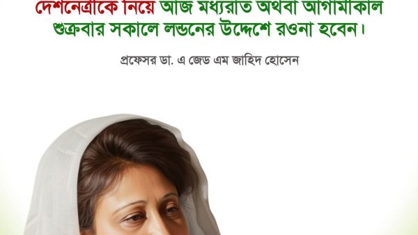 আন্তর্জাতিক মানের চিকিৎসা নিশ্চিত করতেই লন্ডনে নেওয়ার সিদ্ধান্ত চূড়ান্ত হয়েছে। কাতার সরকারের সহায়তায় পাঠানো এয়ার অ্যাম্বুলেন্স ব্যবস্থাপনাও প্রক্রিয়াধীন।” তিনি আরও জানান, চিকিৎসক দল ইতোমধ্যে প্রস্তুতি সম্পন্ন করেছে এবং যাত্রার সময় নির্ধারণ করা হবে খালেদা জিয়ার শারীরিক অনুমতি সাপেক্ষে।