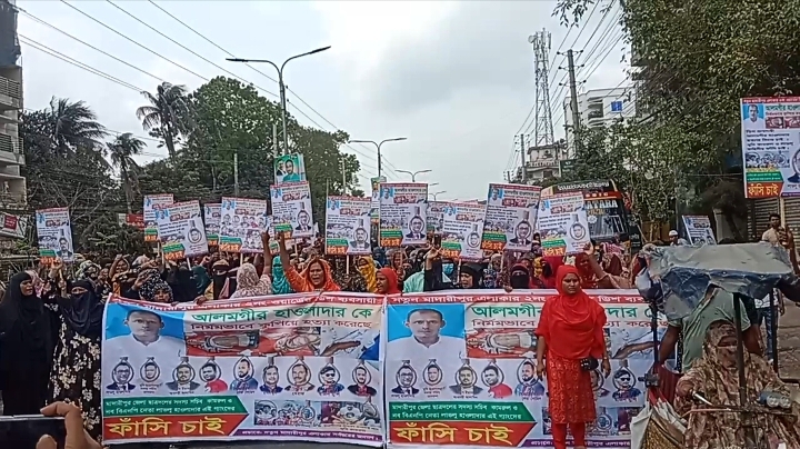 মাদারীপুরে ক্যাবল ডিশ ব্যবসায়ী আলমগীর হাওলাদারকে নৃশংসভাবে কুপিয়ে হত্যার প্রতিবাদে এবং ঘাতকদের দৃষ্টান্তমূলক শাস্তির দাবিতে মানববন্ধন ও বিক্ষোভ মিছিল করেছে নিহতের পরিবার ও এলাকাবাসী। আজ রোববার (১৬ মার্চ) সকালে জেলা প্রশাসকের কার্যালয়ের সামনে শত শত মানুষের অংশগ্রহণে এই কর্মসূচি পালিত হয়। খুনীদের ফাঁসির দাবি মানববন্ধনে অংশ নেওয়া বক্তারা আলমগীর হত্যাকাণ্ডের মূল পরিকল্পনাকারী ও হামলাকারীদের দ্রুত গ্রেপ্তার করে সর্বোচ্চ শাস্তি হিসেবে ফাঁসির দাবি জানান। তারা অভিযোগ করেন, ঘটনার এতদিন পার হলেও মূল আসামিরা গ্রেপ্তার না হওয়ায় নিহতের পরিবার ও এলাকাবাসীর মধ্যে তীব্র আতঙ্ক বিরাজ করছে।