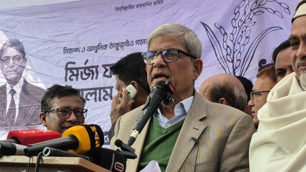 বিএনপির মহাসচিব ও ঠাকুরগাঁও-১ আসনের ধানের শীষ প্রতীকের প্রার্থী মির্জা ফখরুল ইসলাম আলমগীর বলেছেন, বাংলাদেশ জামায়াতে ইসলামী দেশটিকে আফগানিস্তানের মতো করে গড়ে তুলতে চায় এবং বাংলাদেশকে পেছনের দিকে নিয়ে যেতে চায়। সোমবার (০২ ফেব্রুয়ারি) ঠাকুরগাঁওয়ের ঢোলারহাট বাজারে অনুষ্ঠিত এক নির্বাচনী জনসভায় বক্তব্য রাখতে গিয়ে তিনি এ মন্তব্য করেন। মির্জা ফখরুল বলেন, জামায়াতের রাজনীতি দেশের অগ্রগতির পথে বাধা সৃষ্টি করছে। তিনি অভিযোগ করেন, এই রাজনৈতিক ধারা বাংলাদেশের গণতন্ত্র, নারী অধিকার ও সামাজিক অগ্রযাত্রার পরিপন্থী।