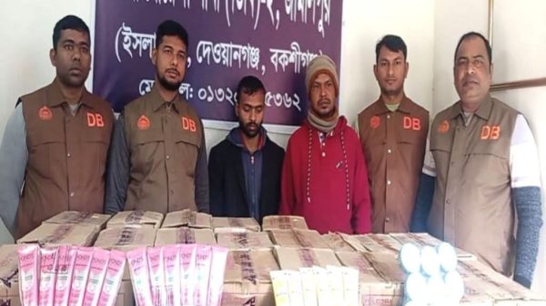 জামালপুরের বকশীগঞ্জে ডিবি পুলিশের বিশেষ অভিযানে ২৪ বস্তা ভারতীয় প্রসাধনী পণ্য জব্দ, আটক ২।