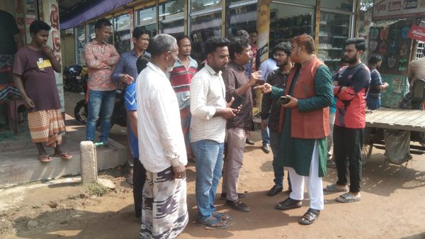 নিম্নমানের সামগ্রী ব্যবহারের অভিযোগে বাজারের ব্যবসায়ী ও স্থানীয়দের প্রতিবাদ