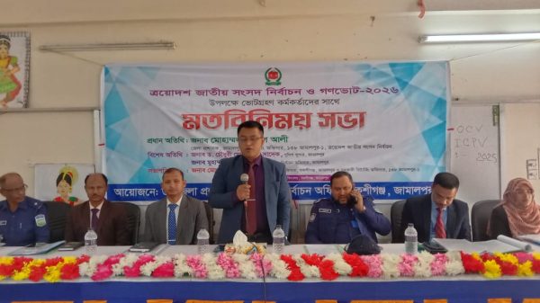 ত্রয়োদশ জাতীয় সংসদ নির্বাচন ও গণভোট–২০২৬ উপলক্ষে জামালপুরের বকশীগঞ্জ উপজেলায় ভোট গ্রহণে দায়িত্বপ্রাপ্ত কর্মকর্তাদের সঙ্গে এক মতবিনিময় সভা অনুষ্ঠিত হয়েছে। শুক্রবার (২৩ জানুয়ারি) সকালে উপজেলা প্রশাসন ও উপজেলা নির্বাচন অফিসের আয়োজনে উলফাতুন্নেছা সরকারি বালিকা উচ্চ বিদ্যালয়ের হলরুমে এ সভা অনুষ্ঠিত হয়। মতবিনিময় সভায় সভাপতিত্ব করেন বকশীগঞ্জ উপজেলা নির্বাহী কর্মকর্তা আবদুল হাই। প্রধান অতিথি হিসেবে বক্তব্য রাখেন জামালপুরের জেলা প্রশাসক ও রিটার্নিং অফিসার মোহাম্মদ ইউসুপ আলী।
