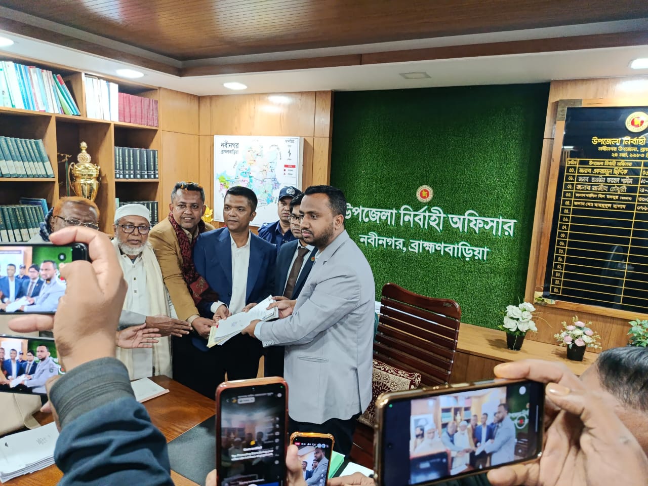 ব্রাহ্মণবাড়িয়া-৫ (নবীনগর) সংসদীয় আসনে বিএনপির বিদ্রোহী ও স্বতন্ত্র প্রার্থী হিসেবে কাজী নাজমুল হোসেন তাপস আনুষ্ঠানিকভাবে মনোনয়নপত্র দাখিল করেছেন। সোমবার (২৯ ডিসেম্বর) দুপুর ১টা ৩০ মিনিটে তিনি নবীনগর উপজেলা নির্বাহী অফিসার ও সহকারী রিটার্নিং কর্মকর্তা মোঃ মাহমুদুল হাসান এবং উপজেলা নির্বাচন অফিসার স্বপন কুমার ভৌমিকের কাছে মনোনয়নপত্র জমা দেন। মনোনয়ন দাখিলকে কেন্দ্র করে নবীনগর উপজেলা পরিষদ চত্বর ও আশপাশের এলাকায় উৎসবমুখর পরিবেশের সৃষ্টি হয়। এ সময় কাজী নাজমুল হোসেন তাপসের সঙ্গে বিপুল সংখ্যক নেতা-কর্মী, সমর্থক ও শুভানুধ্যায়ী উপস্থিত ছিলেন। স্লোগান, মিছিল ও করতালিতে পুরো এলাকা মুখরিত হয়ে ওঠে।