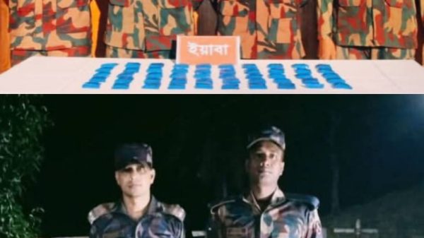 বান্দরবানের নাইক্ষ্যংছড়ি উপজেলায় বর্ডার গার্ড বাংলাদেশ (বিজিবি) ১১ ব্যাটালিয়নের টানা দুই দিনের অভিযানে বিপুল পরিমাণ চোরাচালানি পণ্য ও ইয়াবা টেবলেট জব্দ করা হয়েছে। বিজিবি সূত্র জানায়, ১১ ও ১২ ডিসেম্বর ২০২৫ খ্রিষ্টাব্দে পরিচালিত ধারাবাহিক অভিযানে নাইক্ষ্যংছড়ি উপজেলার কচ্ছপিয়া ইউনিয়নের বড় জাংছড়ি এবং দোছড়ি ইউনিয়নের লেম্বুছড়ি সীমান্ত এলাকা থেকে মালিকবিহীন বাংলাদেশি পণ্য ও ইয়াবা উদ্ধার করা হয়। জব্দকৃত বাংলাদেশি পণ্যের আনুমানিক বাজারমূল্য ১ লক্ষ ২ হাজার ৩ শত টাকা। একই অভিযানে সীমান্ত এলাকা থেকে ১০ হাজার পিস ইয়াবা টেবলেট উদ্ধার করা হয়।