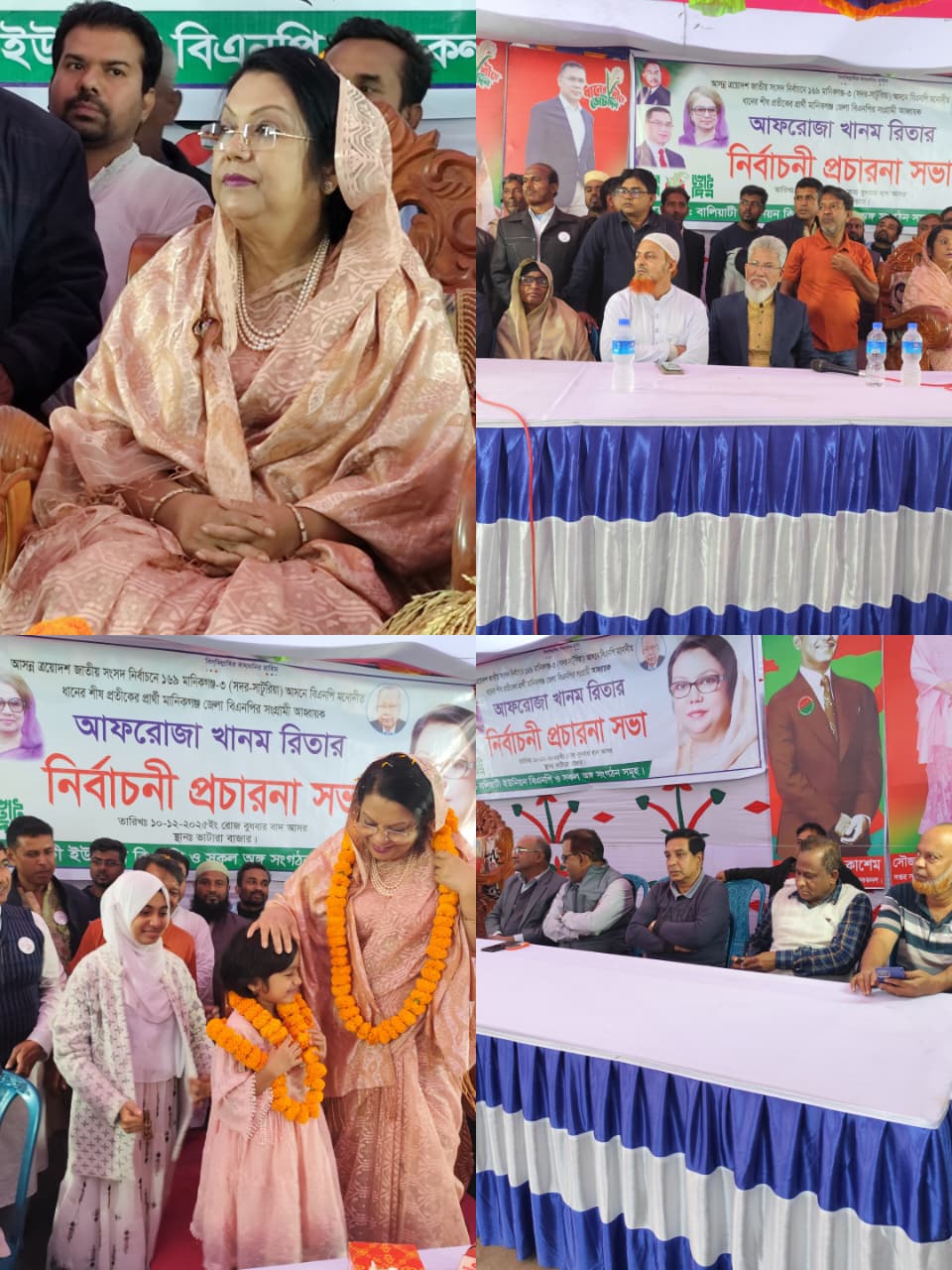 “মানুষের অধিকার, গণতন্ত্র ও উন্নয়নের রাজনীতি পুনরুদ্ধারের জন্য ধানের শীষে আপনারা সবাই ভোট দিন। আপনাদের ভোটেই পরিবর্তন আসবে।” সভায় উপস্থিত সবাই হাত তুলে ধানের শীষে শতভাগ ভোট দেওয়ার প্রতিশ্রুতি ব্যক্ত করেন। দিনব্যাপী প্রচারণায় নির্বাচনী মাঠে নতুন আমেজ দিনশেষে আফরোজা খানম রিতার ব্যস্ত প্রচারণা সাটুরিয়া অঞ্চলে নতুন উদ্দীপনা সৃষ্টি করে। সাধারণ মানুষের মুখে একটি কথাই ঘুরে ফিরে আসে— “এবার পরিবর্তন চাই, ধানের শীষেই ভোট যাবে।”