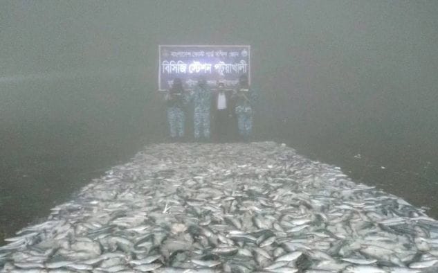 পটুয়াখালীতে কোস্ট গার্ড ও মৎস্য অধিদপ্তরের যৌথ অভিযানে বিপুল পরিমাণ জাটকা জব্দ