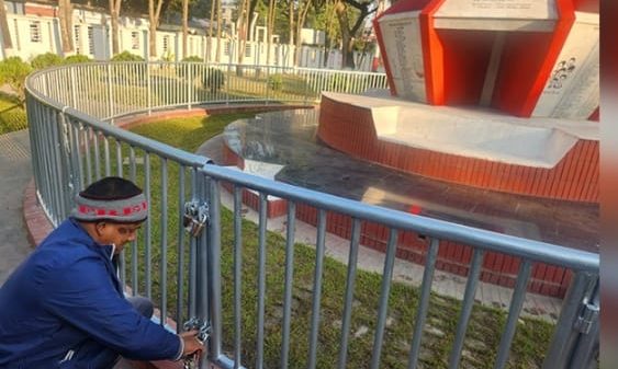 শহীদ বুদ্ধিজীবী দিবসে পাবনার মুক্তিযুদ্ধের স্মৃতিসৌধ ‘দূর্জয় পাবনা’ তালাবদ্ধ অবস্থায় পাওয়ায় ক্ষোভ ও বিস্ময় প্রকাশ করেছেন সাংবাদিকরা। ফুল দিয়ে শ্রদ্ধা জানাতে গিয়ে স্মৃতিসৌধে তালা ঝুলতে দেখে তারা তীব্র প্রতিক্রিয়া জানান। রোববার (১৪ ডিসেম্বর) শহীদ বুদ্ধিজীবী দিবস উপলক্ষে পুষ্পস্তবক অর্পণের জন্য পদযাত্রা নিয়ে পাবনা প্রেসক্লাবের সাংবাদিকরা ‘দূর্জয় পাবনা’ স্মৃতিসৌধে উপস্থিত হন। এ সময় স্মৃতিসৌধের ভেতর ও বাইরে মোট পাঁচটি তালা ঝুলতে দেখা যায়। এতে উপস্থিত সাংবাদিকদের মধ্যে ক্ষোভ ও হতাশা ছড়িয়ে পড়ে। সাংবাদিকদের সেখানে দাঁড়িয়ে থাকতে দেখে জেলা প্রশাসক কার্যালয়ের কর্মচারী ওয়াজেদ মিয়া ও আরদালী সুজন মিয়া ঘটনাস্থলে আসেন। সাংবাদিকরা গেটের বাইরে পুষ্পস্তবক অর্পণের উদ্যোগ নিলে কিছুক্ষণ পর একজন কর্মচারী একগুচ্ছ চাবি নিয়ে এসে তালা খুলে দেন। নাম প্রকাশ না করার শর্তে ওই কর্মচারী জানান, আজ শহীদ বুদ্ধিজীবী দিবস—এ তথ্য তার জানা ছিল না। জেলা প্রশাসকের কার্যালয় থেকেও স্মৃতিসৌধ খোলা রাখার কোনো নির্দেশনা দেওয়া হয়নি। তাই তালা খোলা হয়নি। জেলা প্রশাসক কার্যালয়ের স্টাফ ওয়াজেদ আলী বলেন, এটি আমাদের চেতনার বিষয়। আমরা বুকে ও মনে এই চেতনা লালন করি। তবে কর্মচারীদের আগে থেকে জানানো হয়নি কেন—তা আমার জানা নেই। পাবনা প্রেসক্লাবের সাধারণ সম্পাদক জহুরুল ইসলাম বলেন, এমন দৃশ্য দেখতে হবে—এটা কল্পনাও করিনি। মহান মুক্তিযুদ্ধে জাতিকে মেধাশূন্য করতে শিক্ষক, সাংবাদিক, লেখক ও বুদ্ধিজীবীদের হত্যা করা হয়েছিল। সেই আত্মত্যাগের স্মরণে শহীদ বুদ্ধিজীবী দিবস পালন করা হয়। অথচ আজ সেই চেতনার এমন অবস্থা জেলা প্রশাসনের চরম দায়িত্বহীনতা ও উদাসীনতারই প্রমাণ।