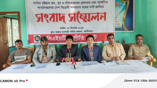 আলীকদমে সিএইচটি সম্প্রীতি জোটের সংবাদ সম্মেলনে সার্বভৌমত্ব রক্ষা ও দুর্গম এলাকার মৌলিক অধিকার নিশ্চিতের আহ্বান