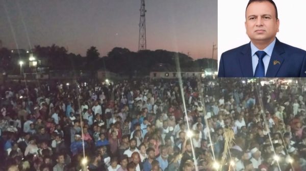 একটি জনসমুদ্র—একটি দাবি—একটি লক্ষ্য। ফুলবাড়িয়ায় ধানের শীষের পক্ষে শক্তি–প্রদর্শন।  “ভোটের অধিকার ফেরাতে — ফারুক ভাইয়ের বিকল্প নাই”