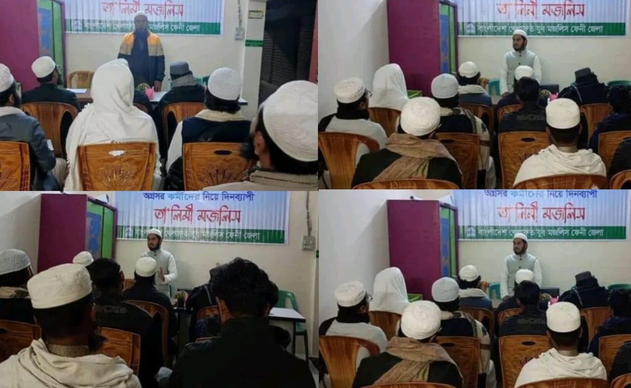 বাংলাদেশ খেলাফত যুব মজলিস ফেনী জেলা শাখার উদ্যোগে অগ্রসর কর্মীদের অংশগ্রহণে দিনব্যাপী “কর্মী তা’লিমী মজলিস” অনুষ্ঠিত হয়েছে। সংগঠনের সাংগঠনিক দক্ষতা বৃদ্ধি, আদর্শিক চেতনা জাগ্রতকরণ এবং কর্মীদের দ্বীনি ও নৈতিক মানোন্নয়নের উদ্দেশ্যে এই তা’লিমী মজলিসের আয়োজন করা হয়। অনুষ্ঠানে সভাপতিত্ব ও সার্বিক তত্ত্বাবধানে ছিলেন বাংলাদেশ খেলাফত যুব মজলিস ফেনী জেলা শাখার মজলিসে আমেলা সদস্য ইকবাল হোসাইন। তার সুচারু পরিচালনায় তা’লিমী মজলিসটি অত্যন্ত সুশৃঙ্খল ও ফলপ্রসূভাবে সম্পন্ন হয়।