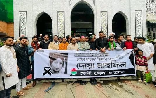 বাংলাদেশ জাতীয়তাবাদী দলের সাবেক প্রধানমন্ত্রী ও আপোষহীন দেশনেত্রী বেগম খালেদা জিয়ার আত্মার মাগফেরাত কামনায় ফেনী জেলা ছাত্রদলের উদ্যোগে বিশেষ মিলাদ ও দোয়ার মাহফিল অনুষ্ঠিত হয়েছে। শুক্রবার জুমার নামাজের পর ফেনী শহরের ঐতিহ্যবাহী বড় জামে মসজিদে এ দোয়া মাহফিলের আয়োজন করা হয়। এতে ফেনী জেলা ছাত্রদলের নেতৃবৃন্দসহ বিভিন্ন শ্রেণি-পেশার ধর্মপ্রাণ মুসল্লিরা অংশগ্রহণ করেন।