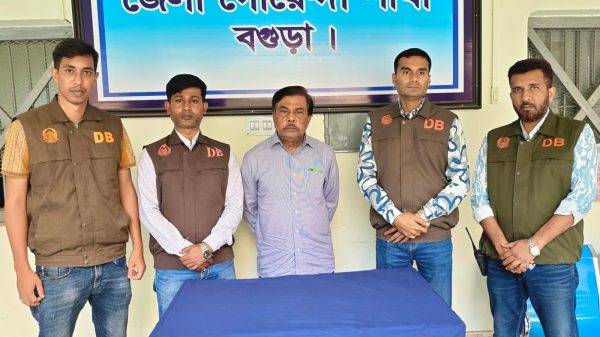 বগুড়ায় জেলা গোয়েন্দা শাখা (ডিবি)-এর বিশেষ অভিযানে বৈষম্যবিরোধী আন্দোলনে হত্যা মামলাসহ একাধিক মামলার পলাতক আসামি, বগুড়া-২ আসনের তিনবারের সাবেক সংসদ সদস্য ও জেলা জাতীয় পার্টির সভাপতি শরিফুল ইসলাম জিন্নাহ (৭৬) গ্রেফতার হয়েছেন। শুক্রবার (২৭ মার্চ ২০২৬) ভোর আনুমানিক ৩টা ৩০ মিনিটে গোপন সংবাদের ভিত্তিতে ঢাকা মহানগরীর রমনা থানা এলাকা থেকে তাকে গ্রেফতার করা হয়। জেলা গোয়েন্দা শাখা (ডিবি) বগুড়ার ইনচার্জ মোঃ ইকবাল বাহারের নেতৃত্বে পরিচালিত এই অভিযানে ডিবির একটি চৌকস দল অংশ নেয়।