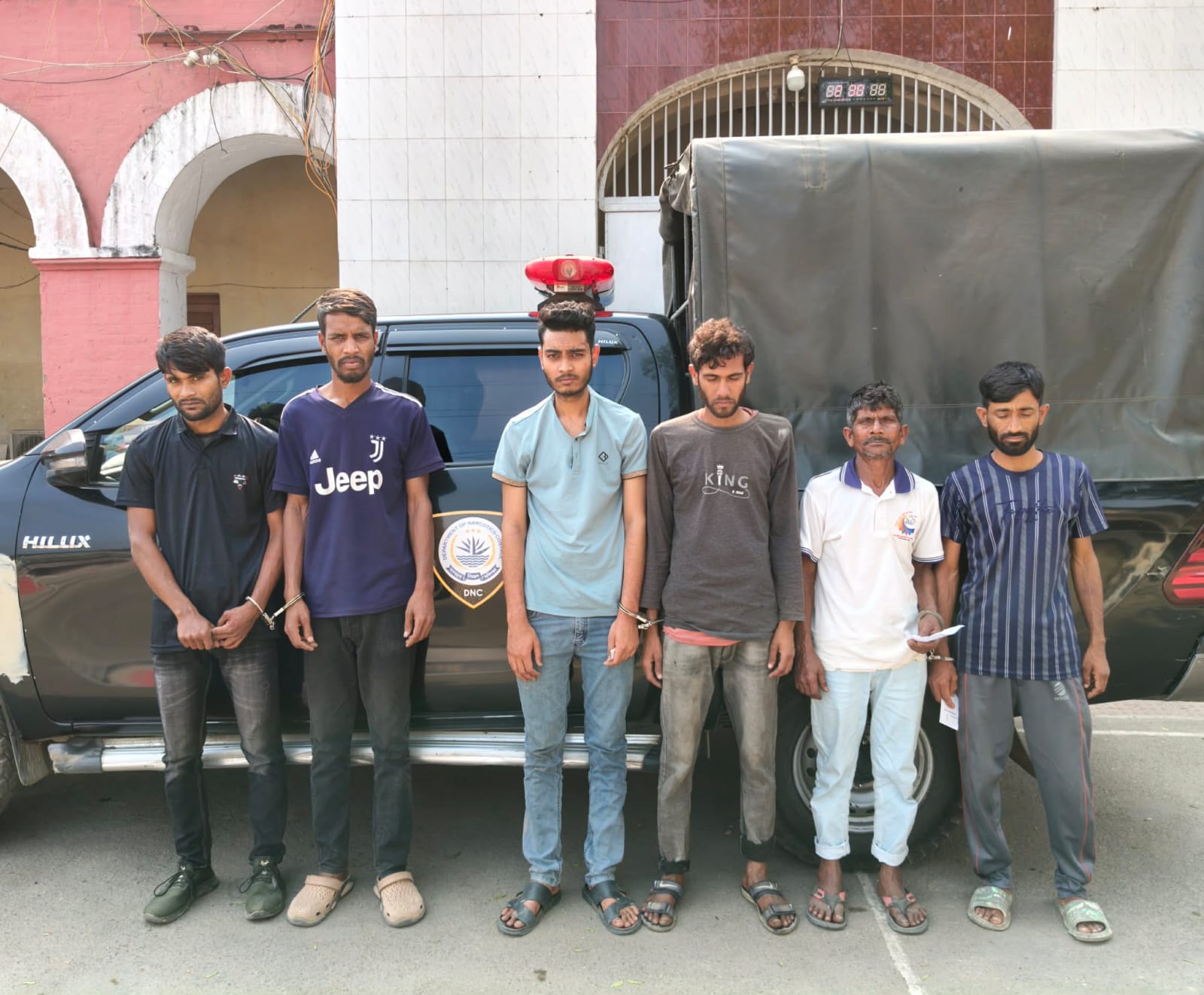 অভিযানে গ্রেফতারকৃতরা হলেন— বগুড়া সদরের খান্দার পূর্বপাড়া এলাকার মো. শাহিনুর রহমানের ছেলে মো. সামী (২২), মধ্য পালশা এলাকার মো. মাসুদ মোল্লার ছেলে মো. শুভ (৩০), কাহালু উপজেলার ডেফুইন এলাকার মো. সাইফুল ইসলামের ছেলে মো. শামীম (২৭), ফুলবাড়ী মধ্যপাড়া এলাকার মো. আশরাফ আলীর ছেলে মো. আবু ছালেক শেখ (৪০), কৈপাড়া এলাকার মৃত কেশব রাজভরের ছেলে নেপাল রাজভর (৫৫) এবং আশোকোলা এলাকার মো. লিটন কাজীর ছেলে মো. আল আমিন (২৭)। ডিএনসি সূত্রে জানা যায়, অভিযানের সময় তাদের বিরুদ্ধে অবৈধ মাদকদ্রব্য সেবনের প্রমাণ পাওয়া যায়। পরে ভ্রাম্যমাণ আদালত পরিচালনা করে প্রত্যেককে ৭ দিন করে বিনাশ্রম কারাদণ্ড ও ৫০ টাকা করে অর্থদণ্ড প্রদান করা হয়।