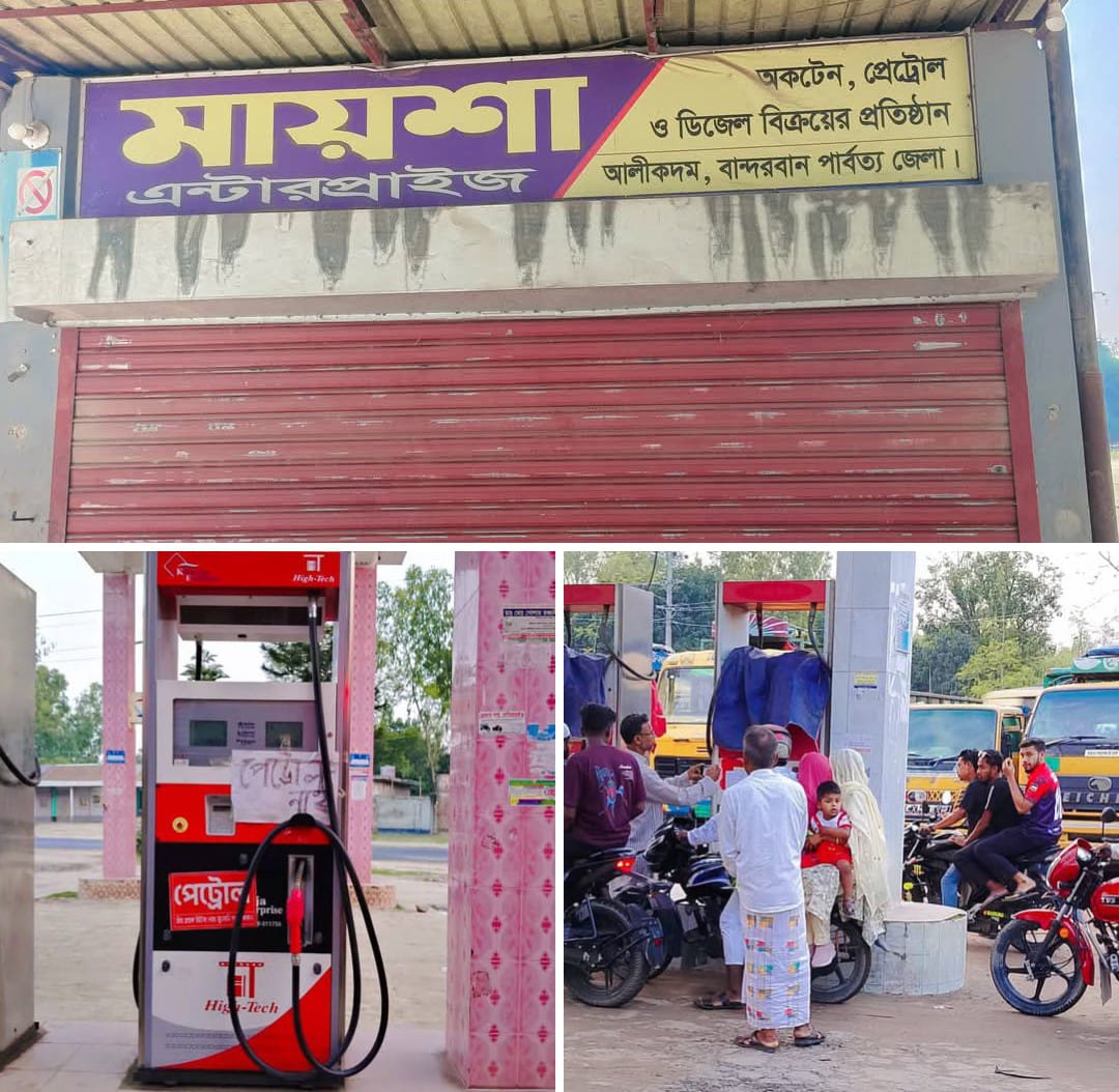 বান্দরবানের বিভিন্ন উপজেলায় জ্বালানি তেলের সংকট, বন্ধ অধিকাংশ পেট্রোল পাম্প।