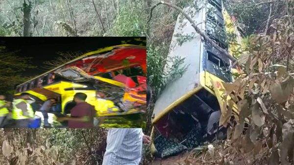 বান্দরবানে অর্ধশত পর্যটক নিয়ে খাদে পড়ল বাস, আহত।