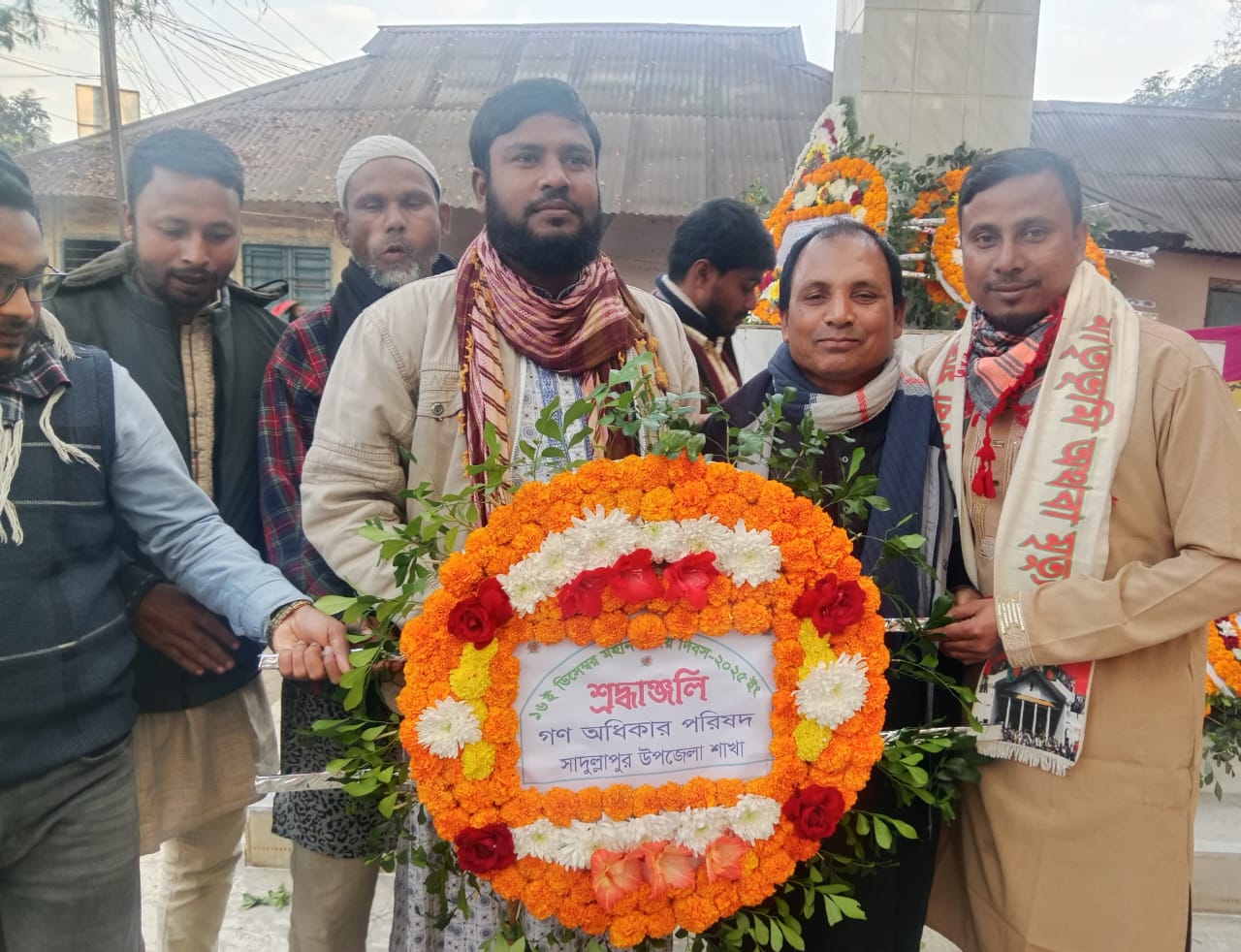 মঙ্গলবার (১৬ ডিসেম্বর) সকাল ৭টা ৩০ মিনিটে গণঅধিকার পরিষদের সভাপতি জনাব আমিনুল ইসলাম, সাংগঠনিক সম্পাদক জিল্লুর রহমান, যুব অধিকার পরিষদের মমিনুল ইসলাম, ছাত্র অধিকার পরিষদের শরিফুল ইসলামসহ সংগঠনের নেতাকর্মীরা সাদুল্লাপুর জাতীয় স্মৃতিসৌধে উপস্থিত হন।