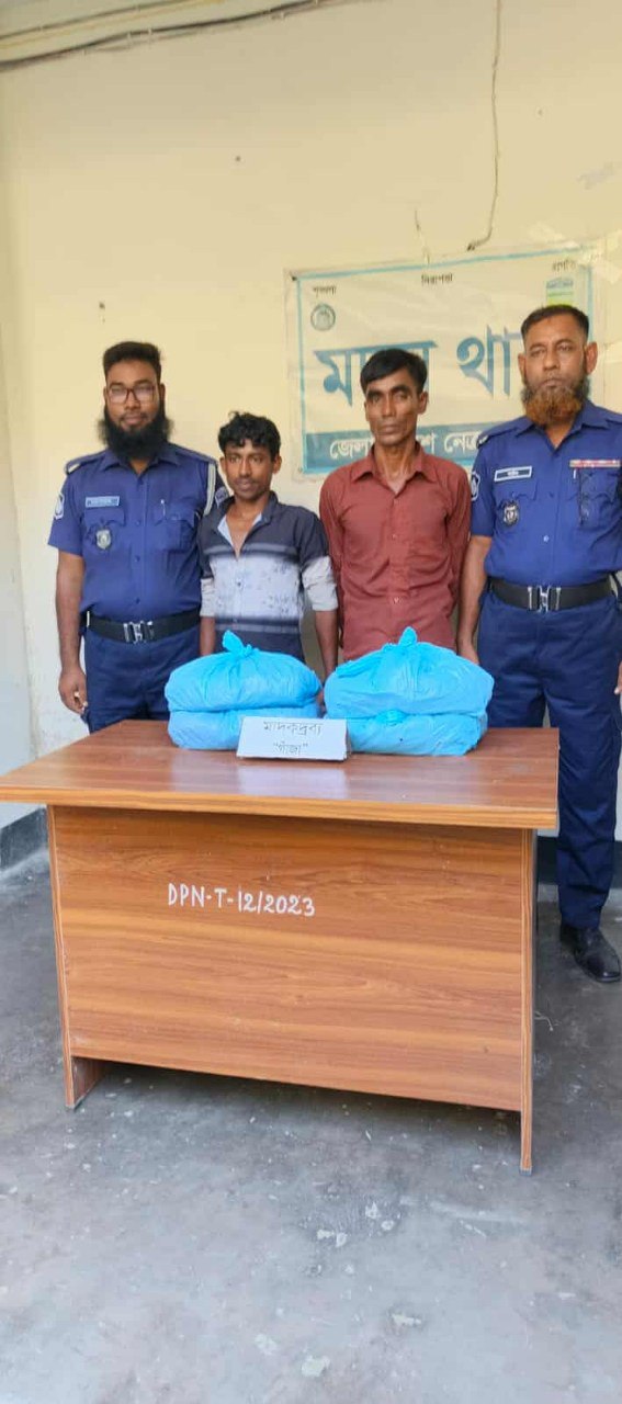 নেত্রকোণার মদন উপজেলায় গোপন সংবাদের ভিত্তিতে অভিযান চালিয়ে ৪ কেজি গাঁজাসহ দুই মাদক ব্যবসায়ীকে গ্রেপ্তার করেছে মদন থানা পুলিশ। বৃহস্পতিবার (২৫ সেপ্টেম্বর) রাত ৮টার দিকে উপজেলার মদন ইউনিয়নের কুলিয়াটি দক্ষিণপাড়া গ্রাম থেকে তাদের আটক করা হয়। গ্রেপ্তারকৃতরা হলেন— ওই গ্রামের মৃত তনু মিয়ার ছেলে আঙ্গুর মিয়া (৩৫) এবং মৃত কুতুব মিয়ার ছেলে পিয়াস (২২)। মদন থানার অফিসার ইনচার্জ (ওসি) শামসুল আলম শাহ জানান, গোপন সংবাদ পেয়ে অভিযান চালিয়ে দুইজনকে আটক করা হয়েছে। তাদের কাছ থেকে ৪ কেজি গাঁজা জব্দ করা হয়। গ্রেপ্তারকৃতদের বিরুদ্ধে মাদকদ্রব্য নিয়ন্ত্রণ আইনে মামলা রুজু করে আদালতের মাধ্যমে জেলহাজতে পাঠানো হয়েছে। পুলিশ সূত্রে জানা গেছে, আটককৃতরা দীর্ঘদিন ধরে এলাকায় গোপনে মাদক ব্যবসা চালিয়ে আসছিল।