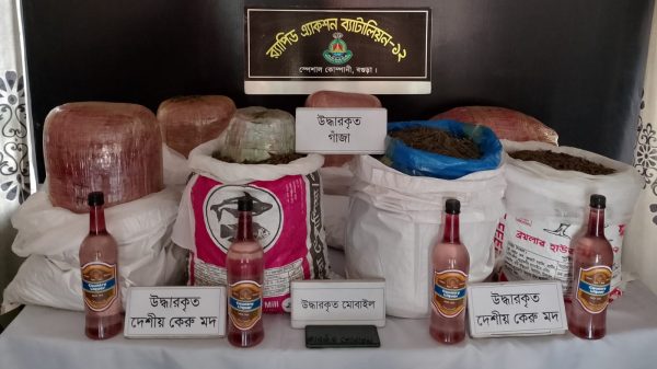 এ সময় তাদের কাছ থেকে ৬৫ কেজি গাঁজা ও ৪ লিটার দেশীয় কেরু মদ উদ্ধার করা হয়। এছাড়া মাদক ব্যবসায় ব্যবহৃত একটি স্মার্টফোন, একটি সিম কার্ড এবং নগদ ২০৫ টাকা জব্দ করা হয়েছে।