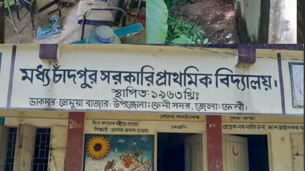 ফেনী সদর উপজেলার লেমুয়া ইউনিয়নের মধ্যম চাঁদপুর সরকারি প্রাথমিক বিদ্যালয় আজ অবকাঠামোগত সংকট আর পুরনো আসবাবের কারণে প্রায় ধ্বংসের পথে। বিদ্যালয়টির শ্রেণিকক্ষ, অফিসকক্ষ, এমনকি টিনশেড ভবন পর্যন্ত এখন জরাজীর্ণ অবস্থায় রয়েছে। পুরনো আসবাব আর ভাঙাচোরা ভবনে পাঠদান বিদ্যালয় প্রাঙ্গণ ঘুরে দেখা গেছে—চেয়ার-টেবিলগুলো বহু বছর পুরনো, অনেকগুলোর পা ভাঙা ও কাঠ নষ্ট হয়ে গেছে। শ্রেণিকক্ষের দেওয়ালে ফাটল, রং উঠে গেছে। একটি টিনশেড ভবনের ছাদের টিন মরিচা ধরে ক্ষয়ে গেছে; বৃষ্টির সময় পানি পড়ে শ্রেণিকক্ষে। অন্যদিকে পাকা ভবনের পেছনে গাছপালা আর বাঁশঝাড়ে দেওয়ালের অংশ নষ্ট হয়ে যাচ্ছে। শিক্ষক অফিসকক্ষেও নেই ভালো মানের কোনো আসবাব। পুরনো কাঠের টেবিল ও বাঁকা চেয়ারে চলছে প্রশাসনিক কাজ।