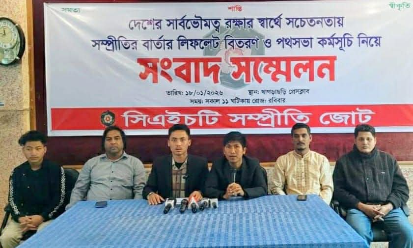 সচেতনতা ও সম্প্রীতির বার্তা নিয়ে লিফলেট বিতরণ ও পথসভা কর্মসূচি ঘোষণা, খাগড়াছড়ি প্রেস ক্লাবে সিএইচটি সম্প্রীতি জোটের সংবাদ সম্মেলন