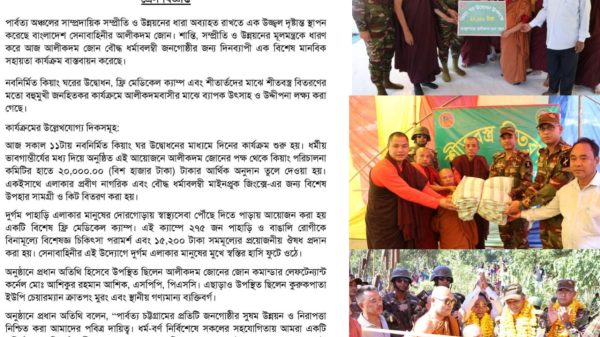 সম্প্রীতির অনন্য দৃষ্টান্ত: আলীকদমে বৌদ্ধ সম্প্রদায়ের পাশে মানবিক সহায়তায় বাংলাদেশ সেনাবাহিনী