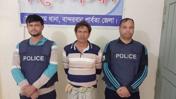 বান্দরবান পার্বত্য জেলার আলীকদম উপজেলায় অভিযান চালিয়ে পাঁচ বছরের কারাদণ্ডপ্রাপ্ত এক ওয়ারেন্টভুক্ত আসামিকে গ্রেফতার করেছে বাংলাদেশ পুলিশ-এর আলীকদম থানা পুলিশ। শুক্রবার (১৩ ফেব্রুয়ারি ২০২৬) দুপুর ১টা ৩০ মিনিটের দিকে আলীকদম উপজেলায় কর্মরত এএসআই রনেশ বড়ুয়া, এএসআই রাজিব দে ও সঙ্গীয় ফোর্সের সমন্বয়ে পরিচালিত বিশেষ অভিযানে তাকে গ্রেফতার করা হয়। পুলিশ সূত্রে জানা যায়, আলীকদম থানার মামলা নং–০৭, তারিখ ২৯/০৩/২০১৭, জিআর–৯০/২০১৭ ও দায়রা–৮১/২০১৭ অনুযায়ী ১৯৯০ সালের মাদকদ্রব্য নিয়ন্ত্রণ আইন (সংশোধিত–২০০৪) এর ১৯(১) টেবিল ৯(খ) ধারায় অভিযুক্ত আসামিকে আদালত পাঁচ বছরের সশ্রম কারাদণ্ড ও অর্থদণ্ড প্রদান করেন। দীর্ঘদিন পলাতক থাকার পর তাকে নিজ বাড়ি থেকে গ্রেফতার করা হয়।