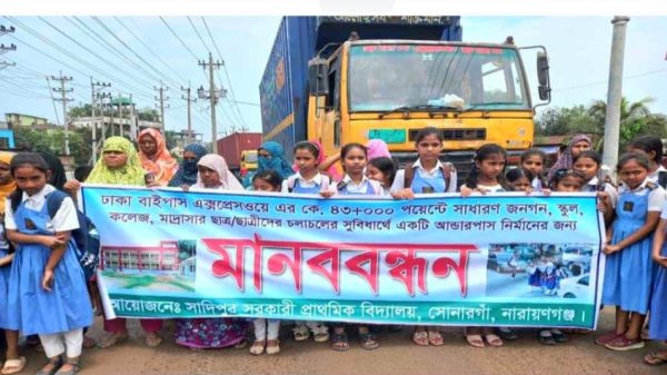 সোনারগাঁয়ে আন্ডার পাস নির্মাণের দাবিতে মানববন্ধন ও বিক্ষোভ