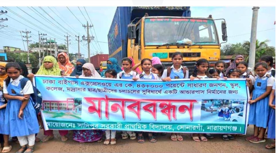 সোনারগাঁয়ে আন্ডার পাস নির্মাণের দাবিতে মানববন্ধন ও বিক্ষোভ