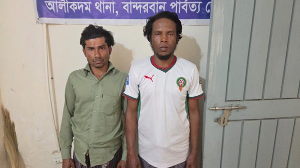 আটককৃতরা হলেন— মোঃ সিদ্দিক (৪০), পিতা: আব্দুল মজিদ। তিনি কক্সবাজারের উখিয়া উপজেলার জামতলী রোহিঙ্গা ক্যাম্প নং–১৫ এর বাসিন্দা। অপরজন মোঃ জুবায়ের (৩৫), পিতা: সুলেমান। তিনি উখিয়ার বালুখালী রোহিঙ্গা ক্যাম্পের ব্লক A–৩৯ এর বাসিন্দা। স্থানীয় সূত্রে জানা যায়, তারা কক্সবাজারের রোহিঙ্গা ক্যাম্প এলাকা থেকে বের হয়ে পার্বত্য জেলা বান্দরবানের আলীকদম এলাকায় প্রবেশ করেছিলেন। বিষয়টি সন্দেহজনক মনে হওয়ায় চেকপোস্টে দায়িত্বরত নিরাপত্তা সদস্যরা তাদের আটক করেন। আলীকদম থানা সূত্রে জানা গেছে, আটক দুই ব্যক্তিকে জিজ্ঞাসাবাদ করা হচ্ছে এবং তাদের বিরুদ্ধে প্রয়োজনীয় আইনগত ব্যবস্থা গ্রহণের প্রক্রিয়া চলমান রয়েছে।