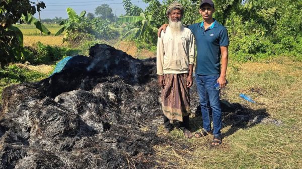নুরপুরে রাতের আঁধারে কৃষকের জীবিকা পুড়িয়ে দিল অজ্ঞাতরা; ক্ষতি পূরণে দুশ্চিন্তায় সোলেমান মুন্সি