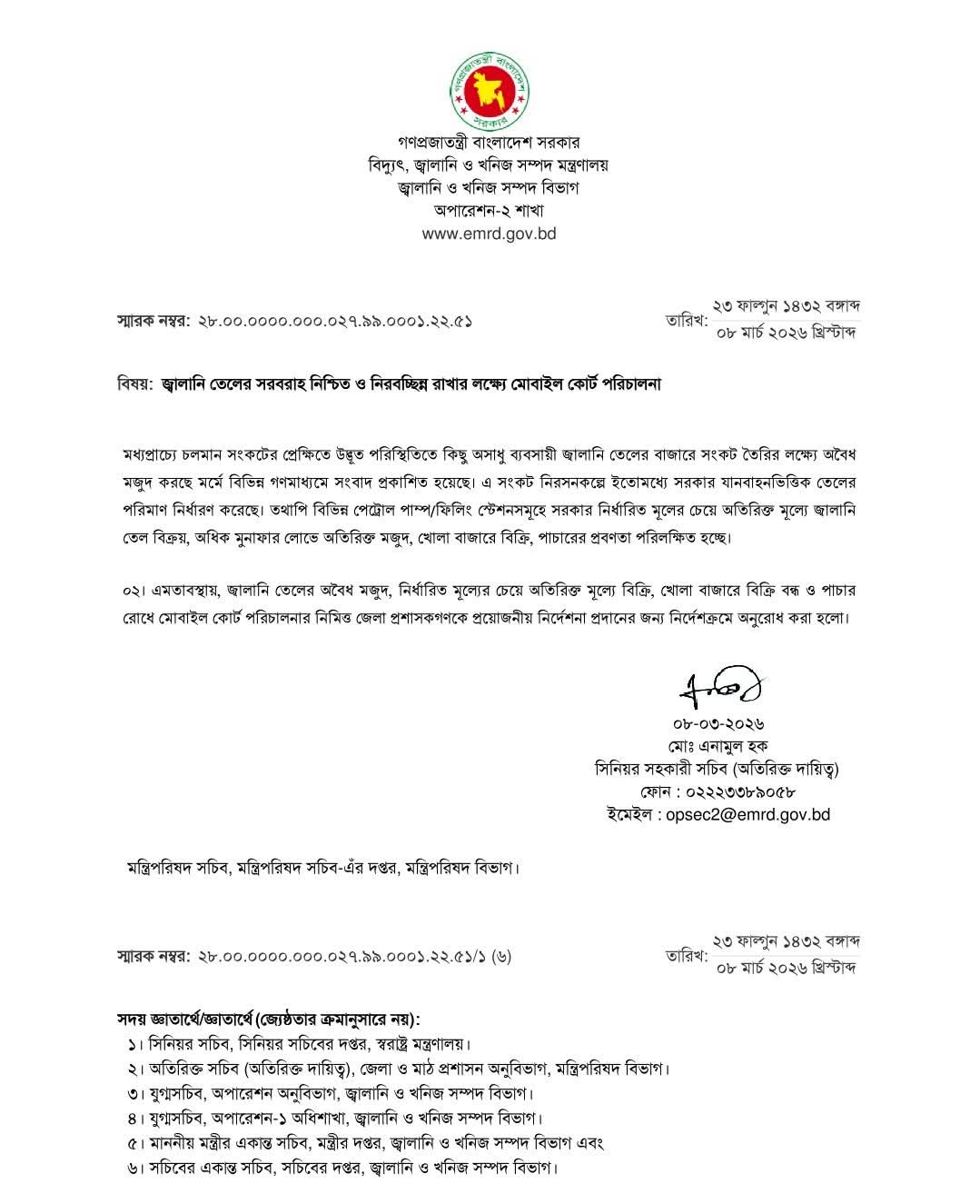 জ্বালানি সরবরাহে মোবাইল কোর্ট