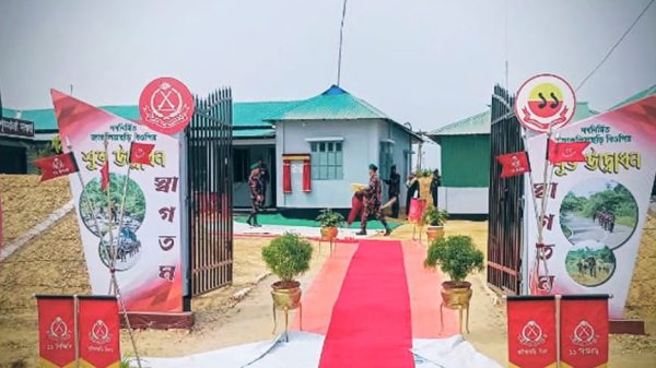 বাংলাদেশ-মিয়ানমার সীমান্তবর্তী বান্দরবানের নাইক্ষ্যংছড়ি উপজেলায় চোরাচালান প্রবণ এলাকা হিসেবে পরিচিত জারুলিয়াছড়িতে নবনির্মিত বিজিবি বর্ডার আউট পোস্ট (বিওপি) উদ্বোধন করা হয়েছে। বুধবার (১১ মার্চ) সকাল সাড়ে ১২টায় নাইক্ষ্যংছড়ি ব্যাটালিয়ন (১১ বিজিবি) এর অধীনস্থ সীমান্ত পিলার-৪৬ থেকে প্রায় ১ দশমিক ৫ কিলোমিটার উত্তরে এবং পুরাতন জারুলিয়াছড়ি বিওপি থেকে প্রায় ২ কিলোমিটার উত্তর-পূর্বে সীমান্ত সড়কের নিকটবর্তী স্থানে নবনির্মিত জারুলিয়াছড়ি বিওপি উদ্বোধন করেন কক্সবাজার বিজিবি রিজিয়নের বিজিয়ন কমান্ডার ব্রিগেডিয়ার জেনারেল মোহাম্মদ আকসার খান, এনডিসি, পিএসসি, পিএইচডি। উদ্বোধনী অনুষ্ঠানে প্রধান অতিথির বক্তব্যে ব্রিগেডিয়ার জেনারেল মোহাম্মদ আকসার খান বলেন, সীমান্ত এলাকায় তেলসহ সব ধরনের চোরাকারবার কঠোর হস্তে দমন করতে হবে। এজন্য বিজিবির প্রতিটি সদস্যকে দেশপ্রেমে উদ্বুদ্ধ হয়ে নিষ্ঠার সাথে দায়িত্ব পালন করতে হবে।