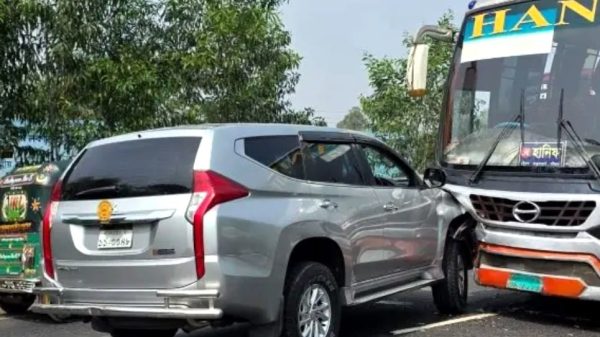 সড়ক দুর্ঘটনার কবলে পড়েছেন অধ্যাপক থানজামা লুসাই। তবে তিনি অক্ষত থাকলেও তার স্ত্রী সামান্য আহত হয়েছেন। রবিবার (৮ মার্চ) সকাল সাড়ে ৯টার দিকে চট্টগ্রাম–কক্সবাজার মহাসড়ক এর পটিয়া উপজেলা এলাকায় এ দুর্ঘটনা ঘটে। স্থানীয় সূত্রে জানা যায়, বান্দরবান জেলা পরিষদ-এর চেয়ারম্যান অধ্যাপক থানজামা লুসাই তার স্ত্রীকে সঙ্গে নিয়ে দাপ্তরিক কাজে বান্দরবান জেলা থেকে ঢাকা যাওয়ার উদ্দেশ্যে রওনা দেন। পথে পটিয়া এলাকায় পৌঁছালে বিপরীত দিক থেকে আসা একটি দ্রুতগামী বাসের সঙ্গে তাদের বহনকারী গাড়ির মুখোমুখি সংঘর্ষ হয়।