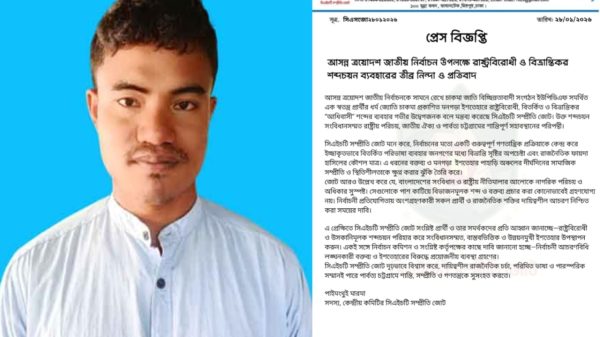 বিজ্ঞপ্তিতে আরও উল্লেখ করা হয়, নির্বাচনের মতো গুরুত্বপূর্ণ গণতান্ত্রিক প্রক্রিয়াকে কেন্দ্র করে ইচ্ছাকৃতভাবে বিতর্কিত পরিভাষা ব্যবহার জনগণের মধ্যে বিভ্রান্তি সৃষ্টির অপচেষ্টা এবং রাজনৈতিক ফায়দা হাসিলের কৌশল ছাড়া আর কিছু নয়। এ ধরনের বক্তব্য পাহাড়ি অঞ্চলের দীর্ঘদিনের সামাজিক সম্প্রীতি ও স্থিতিশীলতাকে ঝুঁকির মুখে ফেলতে পারে। সিএইচটি সম্প্রীতি জোট জানায়, বাংলাদেশের সংবিধান ও রাষ্ট্রীয় নীতিমালার আলোকে নাগরিক পরিচয় ও অধিকার সুস্পষ্ট। সেগুলো উপেক্ষা করে বিভাজনমূলক শব্দ ও বক্তব্য প্রচার কোনোভাবেই গ্রহণযোগ্য নয়। নির্বাচনী প্রতিযোগিতায় অংশগ্রহণকারী সকল প্রার্থী ও রাজনৈতিক শক্তির দায়িত্বশীল আচরণ নিশ্চিত করা সময়ের দাবি।